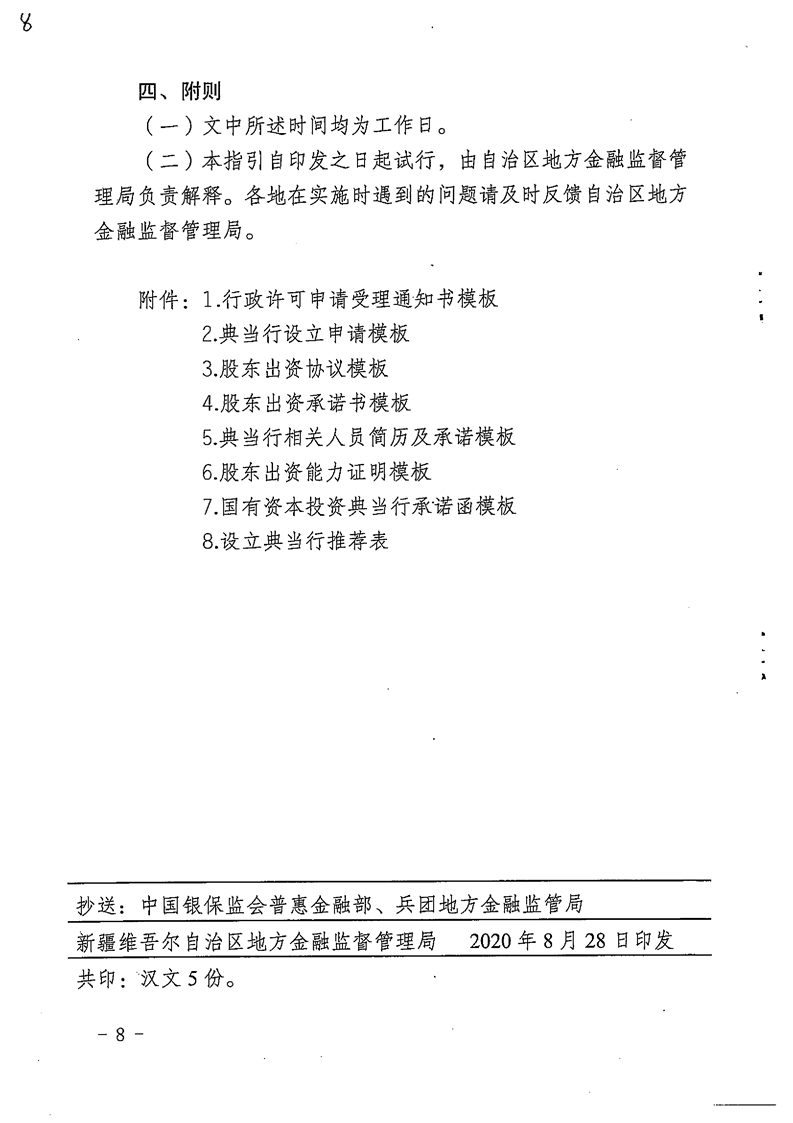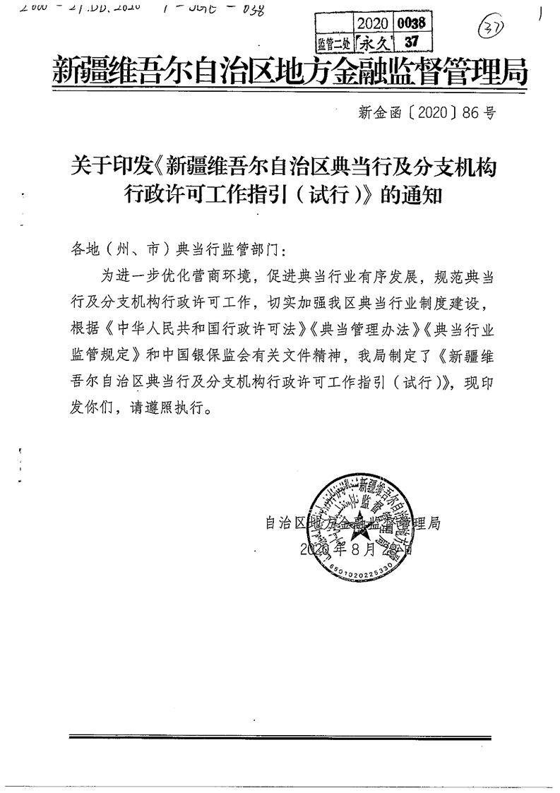 关于印发《新疆维吾尔自治区典当行及分支机构行政许可工作指引(试行)》的通知