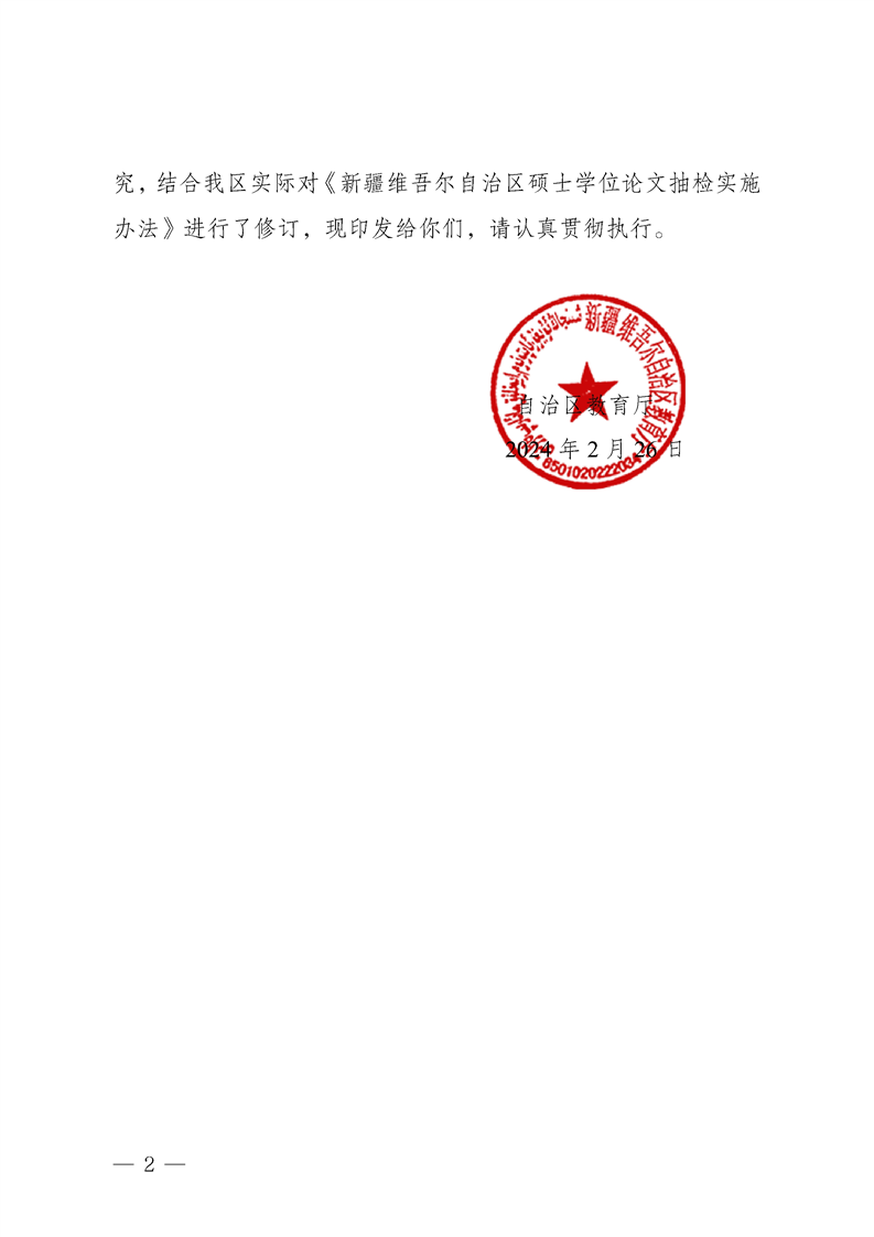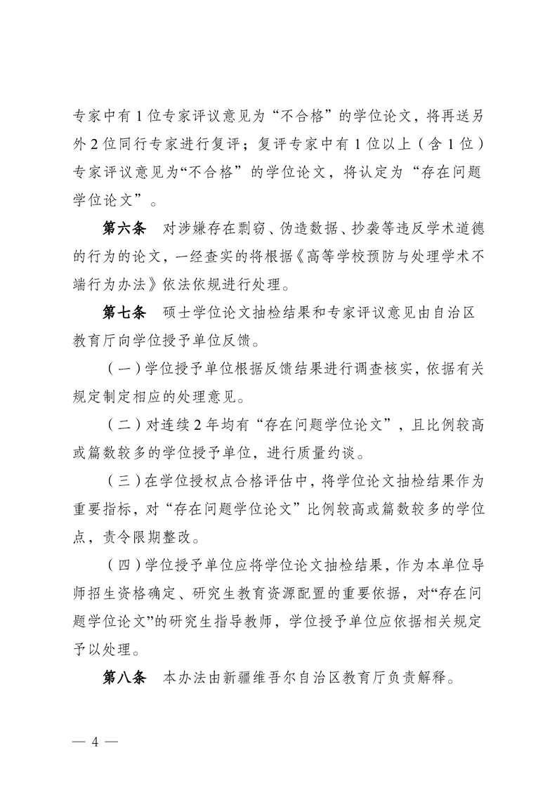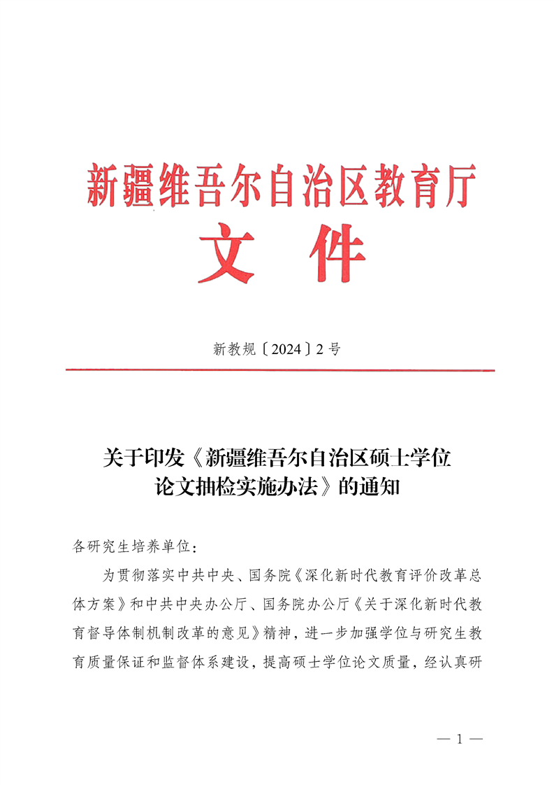 标题:关于印发《新疆维吾尔自治区硕士学位论文抽检实施办法》的通知