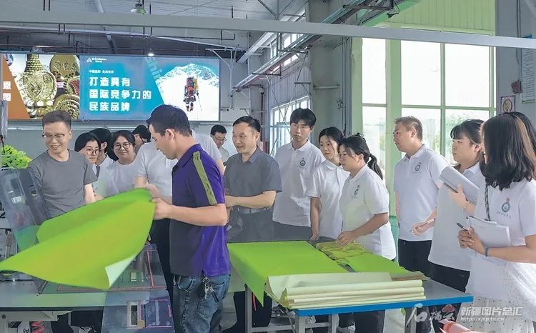 (7月10日,新疆科技学院调研团成员在和田地区一家纺织企业生产车间实地调研 ↑ 邓清涵摄)