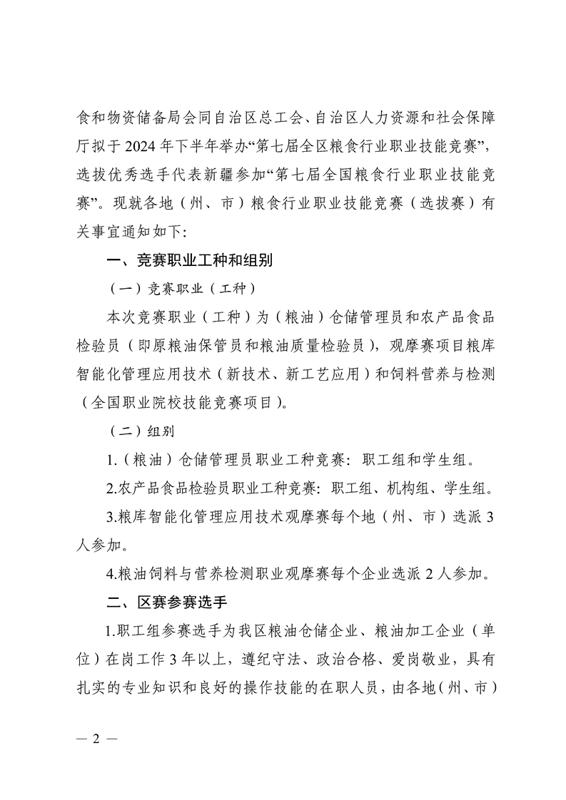 关于组织开展第七届全区粮食行业职业技能竞赛(选拔赛)的通知