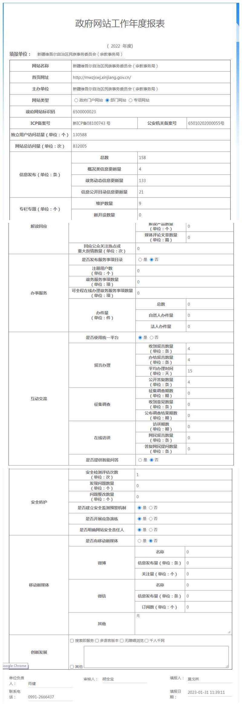 自治区民委(宗教事务局)2022年政府网站工作年度报表