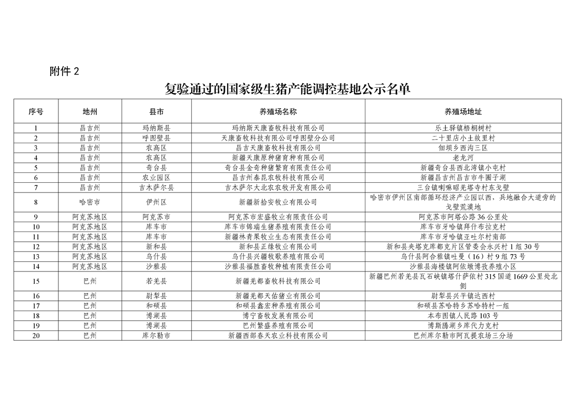 关于2025年国家级、自治区级生猪产能调控基地名单的公示