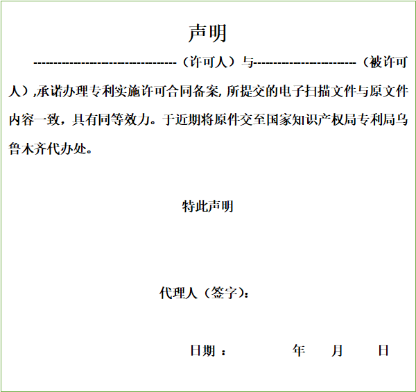 5.其他需要提供的材料。例如,当事人针对专利实施许可合同签订了补充协议的,在必要的情况下应当一并提交。通过互联网在线办理的,应附上由双方当事人或被委托人签章的电子扫描件与原件一