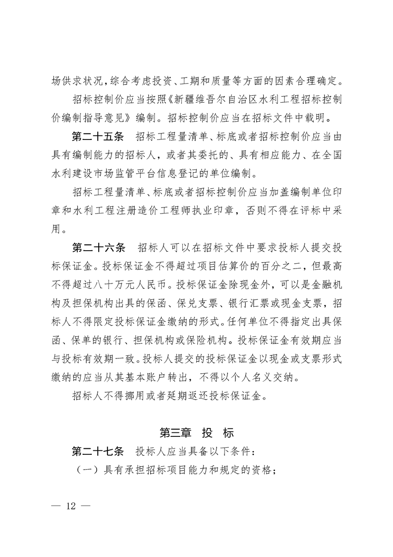 关于印发《新疆维吾尔自治区水利工程建设项目招标投标管理办法》的通知