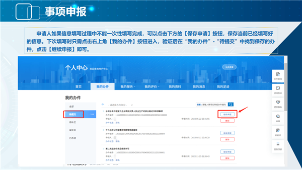 新疆维吾尔自治区行政区域内工商注册的企业在水利水电工程施工企业主要负责人、项目负责人和专职安全生产管理人员安全生产考核合格证书申领事项下提交申请,新疆生产建设兵团行政区域内工商注册的企业在(兵团本级)水利水电工程施工企业主要负责人、项目负责人和专职安全生产管理人员安全生产考核合格证书申领事项下提交申请。