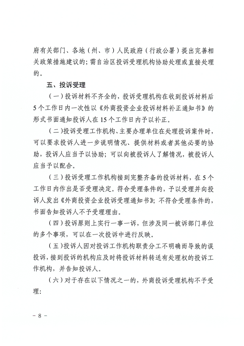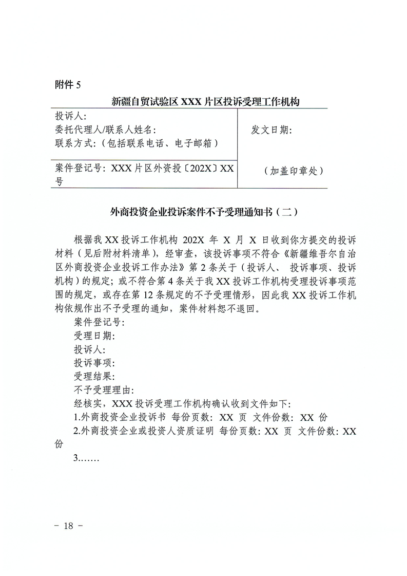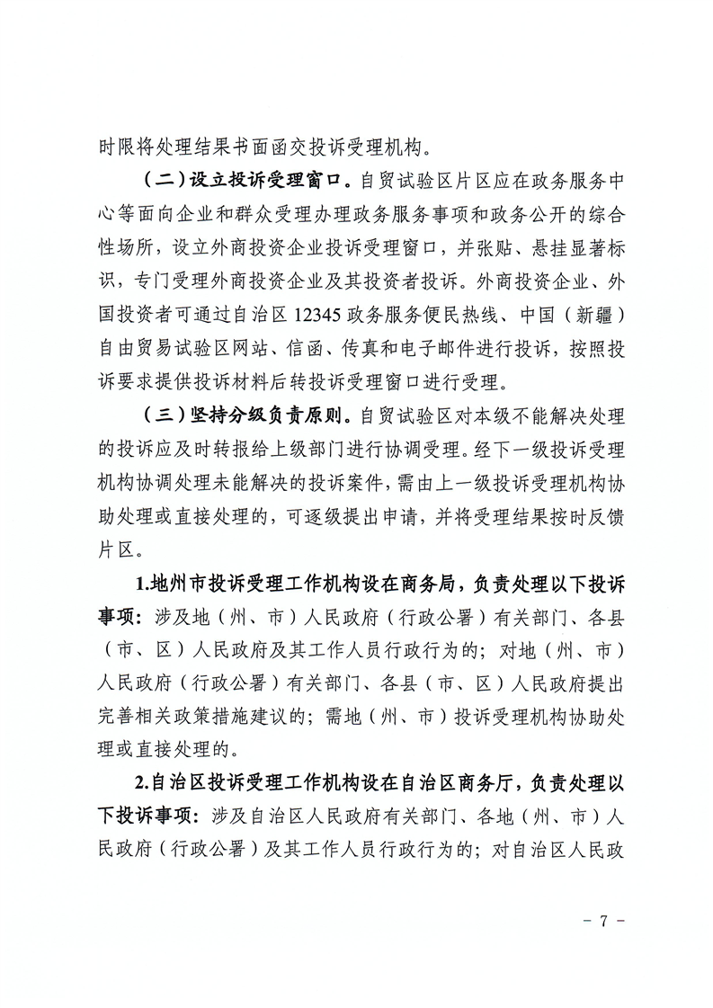 关于印发《中国(新疆)自由贸易试验区外商投资企业投诉“一口受理”工作机制(试行)》的通知