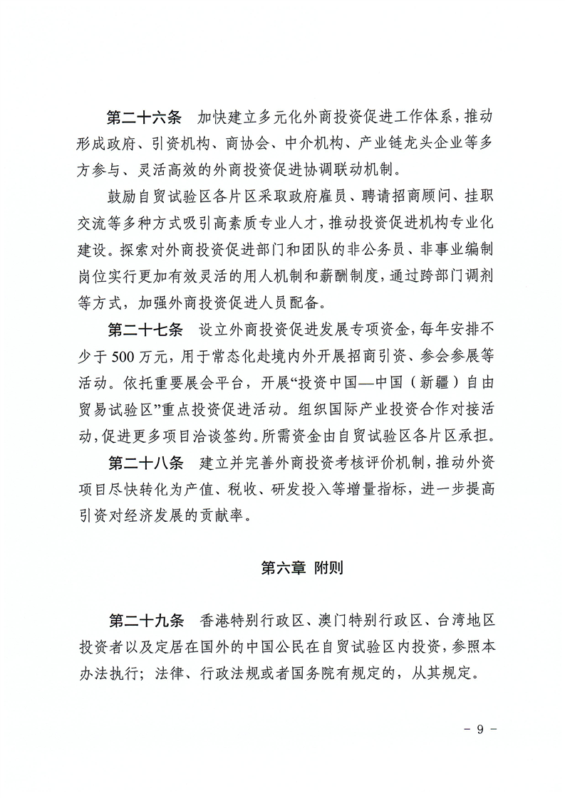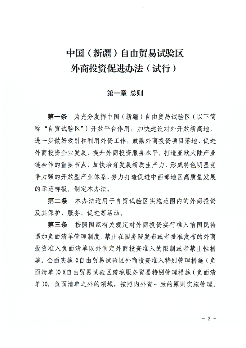 关于印发《中国(新疆)自由贸易试验区外商投资促进办法(试行)》的通知