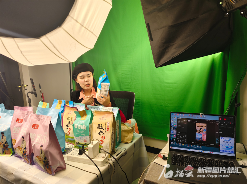 新疆冠域食品有限公司的主播正在直播。张楼 摄