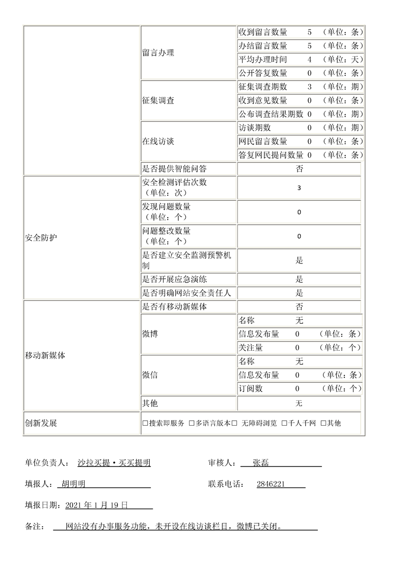 新疆维吾尔自治区政府网站年度报表(2020年)