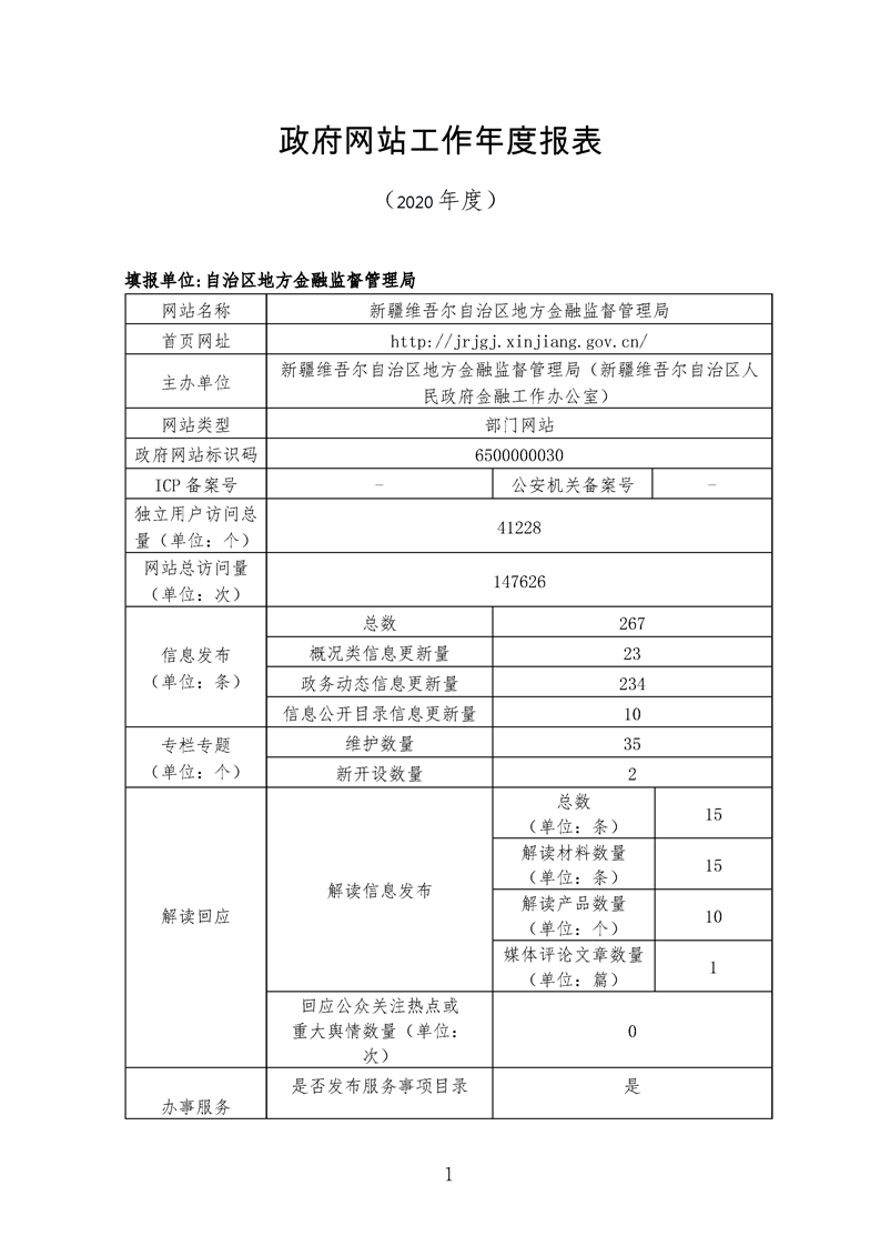 新疆维吾尔自治区政府网站年度报表(2020年)