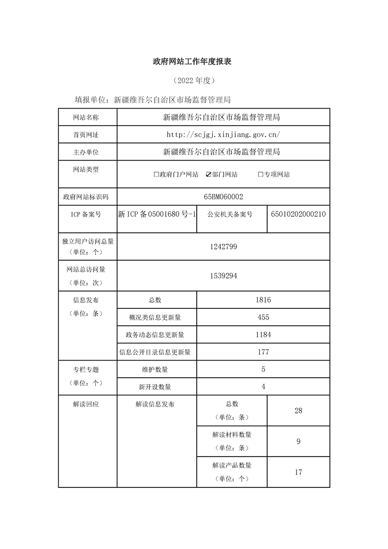 新疆维吾尔自治区政府网站年度报表(2022年)