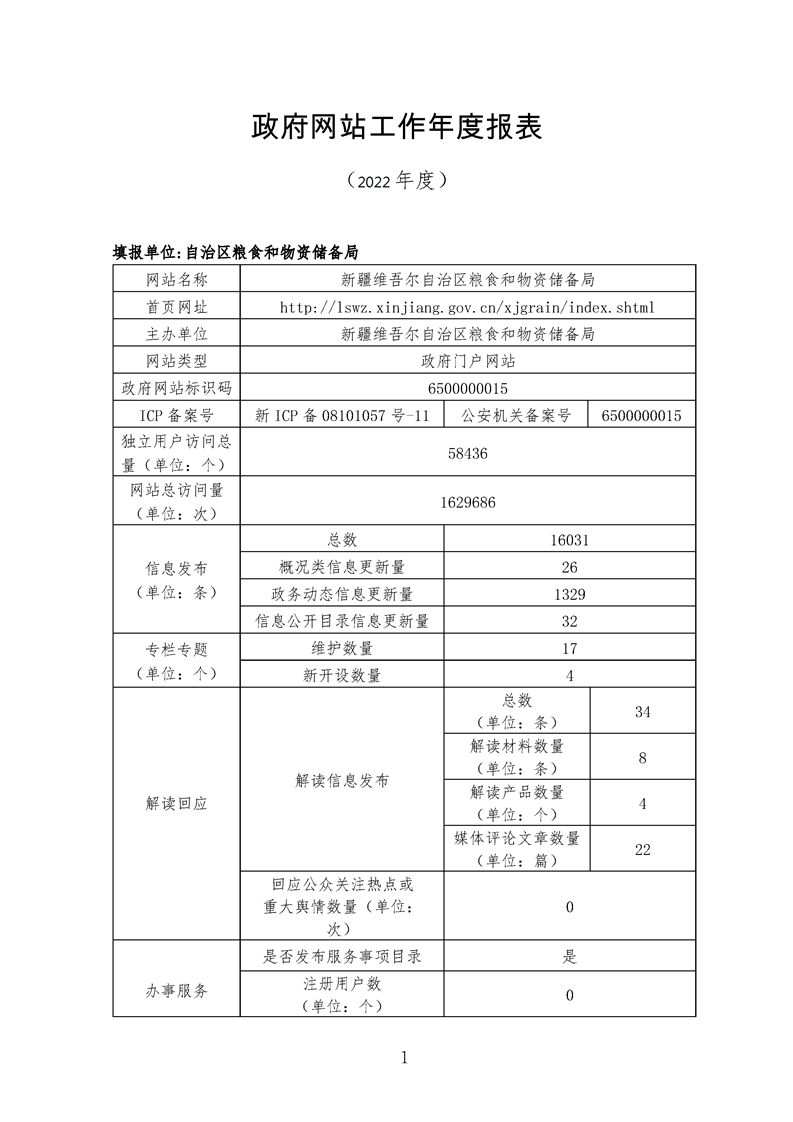 新疆维吾尔自治区政府网站年度报表(2022年)
