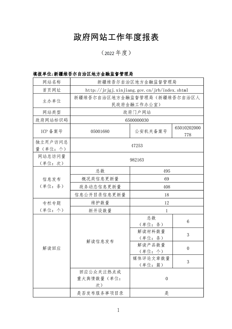 新疆维吾尔自治区政府网站年度报表(2022年)