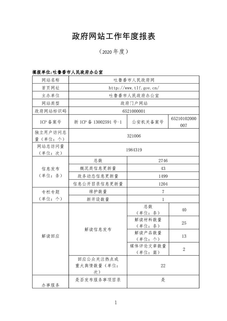 新疆维吾尔自治区政府网站年度报表(2020年)