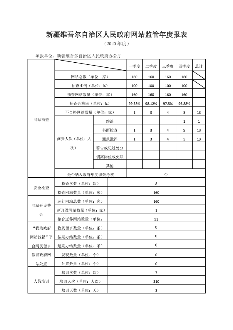 自治区政府网站监管年度报表(2020年度)