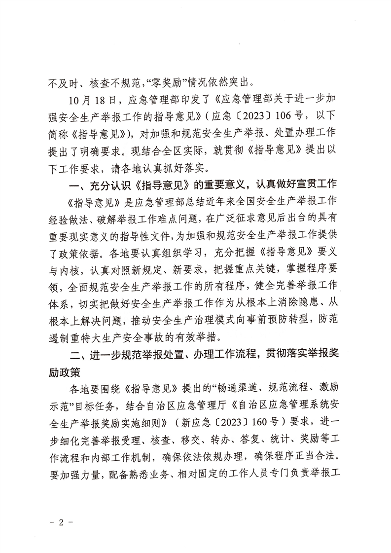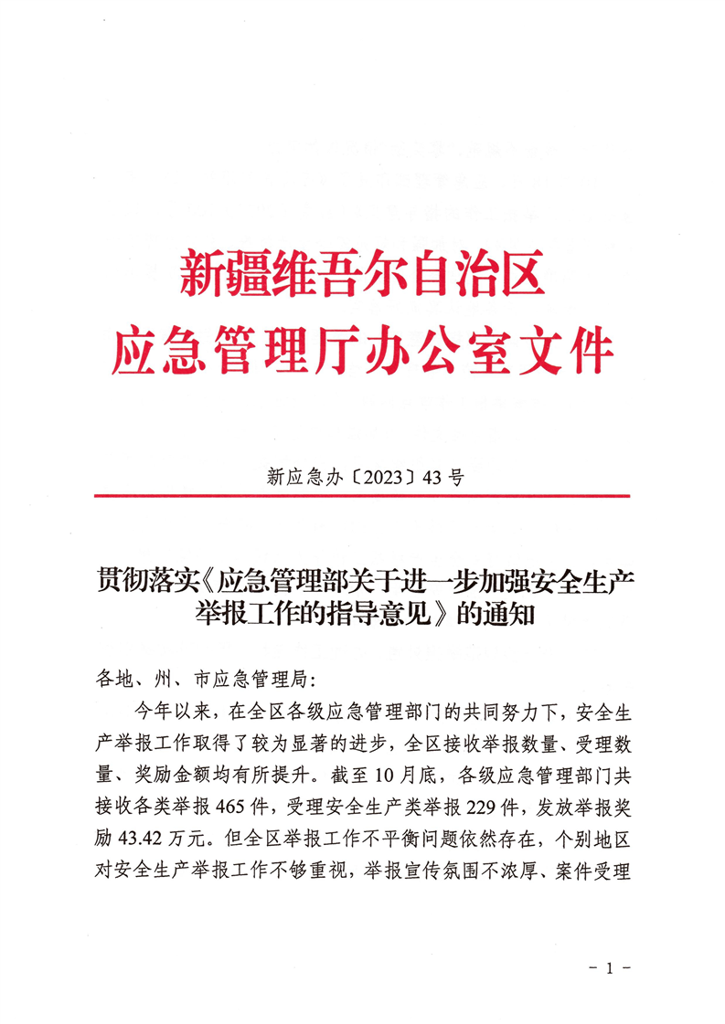 贯彻落实《应急管理部关于进一步加强安全生产举报工作的指导意见》的通知